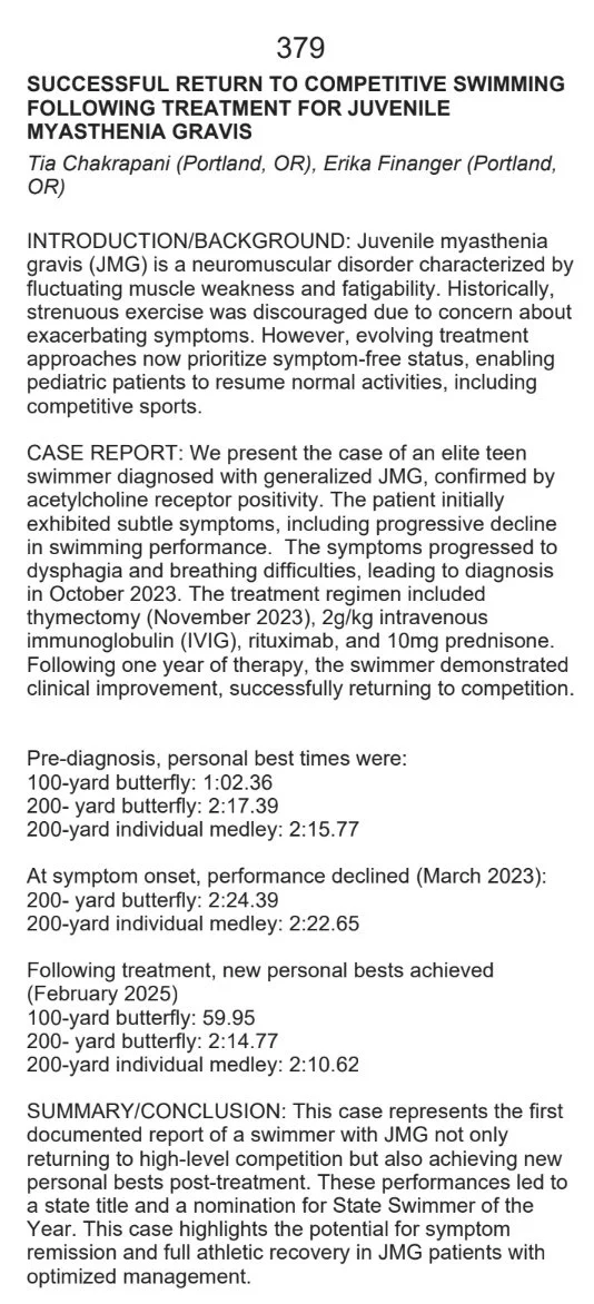Successful Return to Competitive Swimming following Treatment for Juvenile Myasthenia Gravis